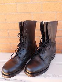 Anfibi militari originali in pelle nera. - Modello stringato. - Suola in gomma. - Interno foderato. - No scatola originale.