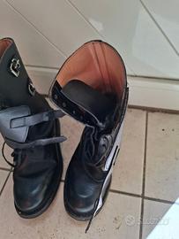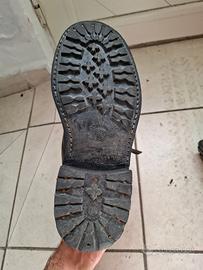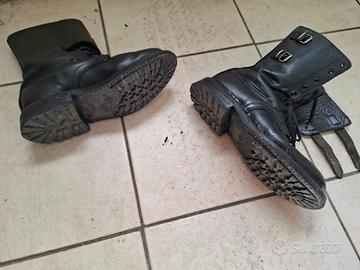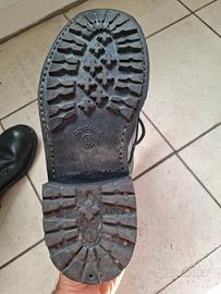Vendesi anfibi militari neri nr 41 usati un paio di volte. Calzature militari da combattimento di qualità con fodera in morbida pelle e suola in gomma per attività all'aperto. Realizzato in pelle, stabile quando si cammina e si attraversano terreni irregolari. Comodo e impermeabile. Adatto per lavoro, abbigliamento, escursionismo e uso professionale. Stato d' usura come nuovi e senza graffi. La gomma e' rinforzata da cuciture percio' indistruttibili. Il prezzo e' di euro 30.