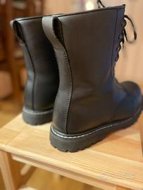 Anfibi in ottimo stato, praticamente non usati, vendo per misura errata. N.B. L’etichetta interna riporta la misura 43 ma, non so se per un errore nell’applicarla o perché la calzata è proprio così abbondante, calzano in realtà un numero in piú, quindi 44.