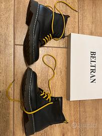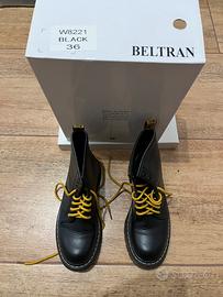 Taglia 36 anfibi donna tipo dr Martens marca Beltran usati un paio di volte ma in perfetto stato, calzano normale. Non hanno graffi. Suola come nuova. Comprensivi di un paio di lacci neri di ricambio (dotazione base con i lacci gialli).