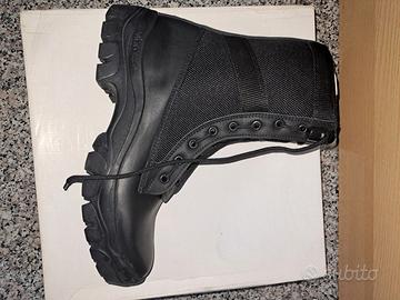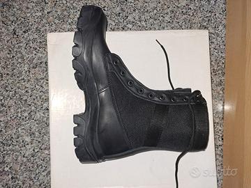 Anfibi tipo militare in pelle e cordura suola in vibram con lacci e zip nuovi con scatola taglia 41