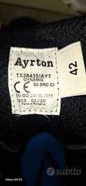 Come da titolo,vendo x inutilizzo anfibi Marca Ayrton modello TX38435/AYT,in condizioni impeccabili.Modello professionale con puntale in acciaio,doppia suola interna antiperforazione,gomma antistatica,comodissimi.In vendita nuovi a 190.00 euro.La taglia e' 42,ma veste pure 43 comodamente.