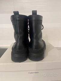 Vendo anfibi uomo Calvin Klein vera pelle con suola in gomma. Articolo praticamente nuovo. Indossato 3 volte. Taglia 41 cin scatola originale