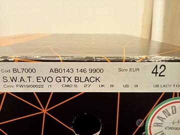 anfibi marca Crispi modello swat evo GTX black misura 42 ma adatta anche a piede 43 , modello in pelle e in goretex in uso alle forze dell'ordine con tutte le caratteristiche operative e tecniche del caso .
