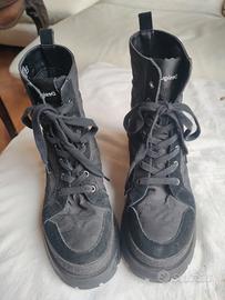 Vendo anfibi marca DISEGUAL n.37 in pelle e tessuto techno impermeabilizzato. Il tessuto ha un motivo arabescato tono su tono. La suola è a carrarmato. Molto belli anche con le gonne e adatto anche alla stagione estiva. Condizioni ottime.