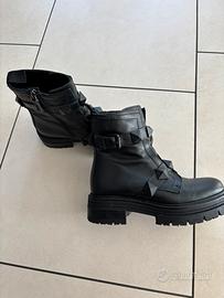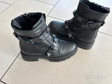 Anfibio con borchie in pelle nera, nuovo con scatola, vendo per sbaglio misura