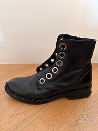 Anfibio in vera pella nera con maxi occhielli