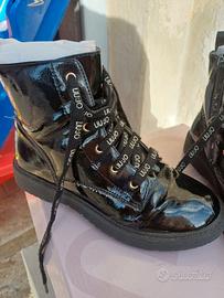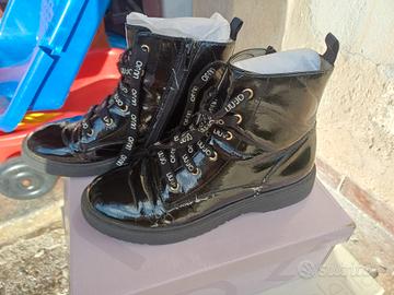 Vendesi anfibi da bambina marca LIU-JO in vernice nera taglia 34 completi di scatola