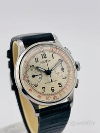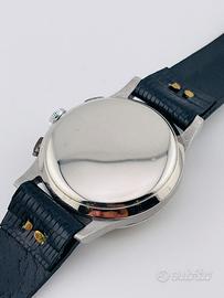 Angelus Antimagnetic cronografo anni ‘50 con cassa in acciaio da 35mm e fondello a pressione. Movimento Angelus cal. 215 con scappamento ad ancora, bilanciere a vite e spirale Breguet.