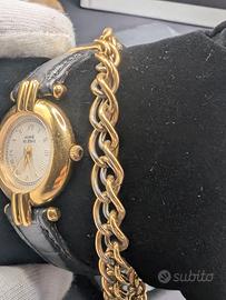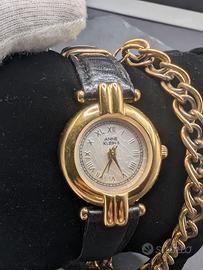 Raffinato Anne Klein II vintage da donna, caratterizzato da cassa dorata e quadrante chiaro con numeri romani, dal forte gusto gioiello tipico degli anni ’80/’90.