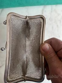 Antica borsetta in argento 800 con tanto di punzonatura,(peso 252 grammi) risalente ai primi del novecento. Dimensioni 17x16 Lunghezza catena 46 cm