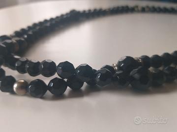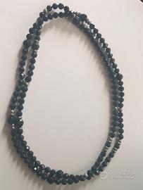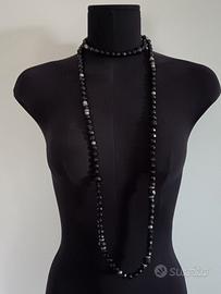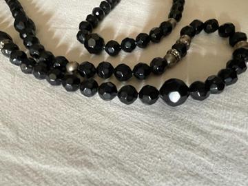 Splendida collana in granati con finiture in argento, realizzata ad inizio 1900, lunga, come nella moda degli anni 1910-1920. Realizzata da manifattura italiana, di particolare eleganza per il colore scuro che si abbina anche con una semplice dolcevita. La conservazione è buona, come da foto e la lunghezza permette anche un doppio giro. Si tratta di un pezzo da collezionismo. Misura lineare (aperta): 150 cm Le foto rappresentano il bene così come venduto. Si garantisce sulla lecita provenienza del bene. Grazie