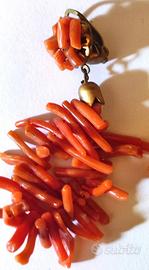 Antica coppia di orecchini in corallo rosa mediterraneo trapani con chiusura in oro.