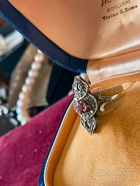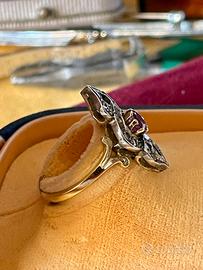 Anello in oro18kt 750% gr 3,90 con diamanti taglio rosette e al centro un rubino naturale marchiato allinterno del gambo misura 15