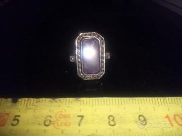 anello in argento con ametista e marcassiti una marcassite mancante antico vintage d'epoca periodo e stile art decò