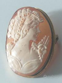 Splendido cameo antico, in corniola, raffigurante dama di profilo acconciata all’antico. Il cameo, di grande qualità esecutiva, è di manifattura campana di inizio 1900, montato in argento placcato oro (presenti marchi) e utilizzabile sia quale medaglione che come spilla. Misure: 4 x 3 cm Le foto rappresentano il bene così come venduto. Si garantisce sulla lecita provenienza del bene. Grazie.