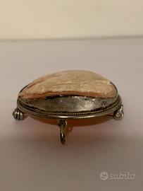 Antica bellissima Spilla / Pendente con montatura in Argento massiccio, con incastonato un cammeo raffigurante busto di Nobildonna.