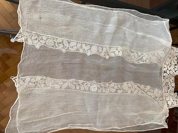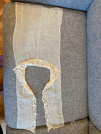 per collezionisti: antico colletto e sparato camicia solo anteriore con pizzo ricamato su tessuto voile di seta - fatto a mano - completo di bottoncini di madreperla e asole - colore crema -