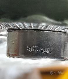 L’oggetto combina l’eleganza senza tempo dell’argento lavorato a mano con un design floreale raffinato, perfetto sia come elemento da collezione sia come elegante oggetto decorativo. L’argento 800 indica un contenuto di metallo prezioso pari all’80%, attestando l’autenticità e la qualità dei materiali.