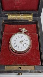 Da ricca collezione privata di orologi da tasca vendesi : Antico orologio da tasca tutto originale e funzionante Si tratta di un orologio da tasca prodotto agli inizi del 1900 con normali segni di usura dovuti all’età Misure: 33 mm di diametro Ottima conservazione e buon funzionamento del meccanismo meccanico 10 rubini Materiale della cassa: argento 800 Venduto nella splendida scatola originale in legno Le foto pubblicate si riferiscono esclusivamente all'oggetto realmente in vendita e dimostrano il suo buono stato di conservazione - affaristi e perditempo sono pregati di evitare contatti e commenti stupidi In presenza di offerte dall'estero si prega di contattare preventivamente per stabilire le spese di spedizione trattasi di trattativa tra privati quindi vige la regola " visto e piaciuto " ART. 2026/011