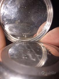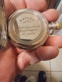 Orologio da taschino in argento Patek Geneve movimento meccanico, lucidato,vetro nuovo, pulsantino per regolare ora, piccola imperfezione ininfluente nel quadrante