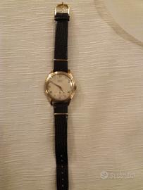 Privato vende antico orologio da polso, colore dorato, con cinturino in pelle.