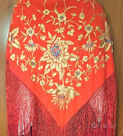 Antico Scialle in Tibet ricamato a mano in Macrame anni '50 ricordo di famiglia mai usato.
