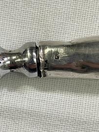 Vendesi prezioso tiralacci antico (conosciuto anche come button hook), accessorio d'epoca originale dell'inizio del XX secolo (periodo Liberty/Edoardiano). Uno strumento di classe utilizzato un tempo per allacciare stivali, guanti e corsetti.