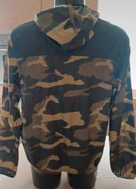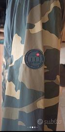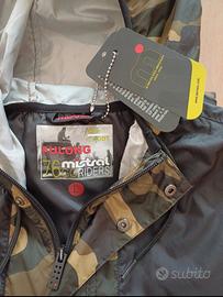 Giacca antivento/pioggia Mistral in fantasia militare , nuovo con cartellini , taglia Large , con cappuccio , 100% poliestere , dotato di cerniera , bottoni e doppie tasche .