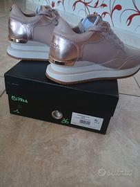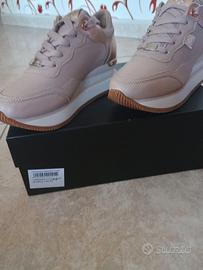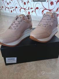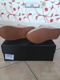 Vendo bellissime sneaker originali Apepazza, modello Marie, taglia 36. Le scarpe sono NUOVE, MAI INDOSSATE (come visibile dalle foto della suola immacolata). Vendo esclusivamente per cambio numero piede. Caratteristiche principali: Colore: Nude / Cipria con dettagli metallizzati in Rose Gold. Dettagli: Finiture curate, inserti gioiello sui lacci e logo Apepazza sul tallone. Suola: Platform "chunky" bianca con battistrada antiscivolo color miele. Condizioni: Perfette, mai usate. Corredo: Incluse di scatola originale con etichetta di vendita a 130€. Un'ottima occasione per acquistare una scarpa di alta qualità a una frazione del prezzo di listino.