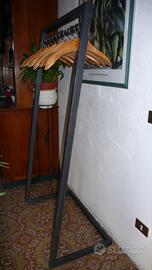 Stand Appendiabiti Attaccapanni di Design Arredo da Terra Costruzione ferro sverniciato quadro 40 x 30 mm base ferro con sottostanti piedini regolabili stabilizzanti. Barra porta grucce ferro tondo diametro 30 mm.