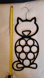 Appendiabiti / organizer in feltro nero a forma di Gatto, ideale per sciarpe, cravatte e cinture.