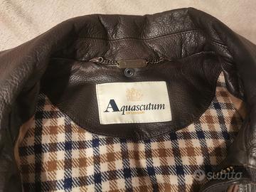Bellissimo giaccone originale Aquascutum of London, pelle morbida e senza un graffio, usato pochissimo, unico piccolo difetto una scucitura nella fodera della manica (vedi ultima foto). Un capo prestigioso completo del suo cappuccio originale in pelle. Tutto in perfetto stato, 4 tasche sul davanti, 2 tasche interne.