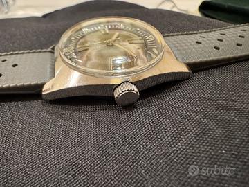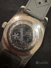 Vendesi dalla mia collezione privata, per finanziare altro progetto, questo modello di aquastar assegnato alla divisione sommozzatori NEMROD , vintage di fine anni 60, perfettamente fubzionante ed a carica automatica. Monta un cinturino mod. Racing in gomma e pelle di ottima fattura. Ne garantisco il corretto funzionamento e la lecita provenienza. Posso spedire previo pagamento ma prediligo lo scambio a mano su roma. Valuto scambi e permute con longines ebel eska ed orologi vintage di forma.