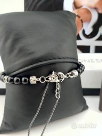 Aragonesi Santiago BR3606 — Bracciale Uomo in Acciaio 316L Essenziale nella forma, potente nel carattere. Il Santiago BR3606 è interamente composto da sfere in agata nera naturale, una pietra da sempre associata a forza e protezione. Un bracciale che si indossa con convinzione, dal giorno alla sera. Caratteristiche Materiale: Acciaio inossidabile 316L – ipoallergenico, resistente alla corrosione Composizione: Sfere interamente in agata nera naturale Chiusura: Nuova chiusura in acciaio 316L Condizione: Nuovo, mai indossato Modello: BR3606 Brand: Aragonesi Santiago Abbinamento Si porta da solo per un look minimal e deciso, oppure con bracciali in acciaio brunito o cordino. Ideale con orologi sportivi o casual dal quadrante scuro.