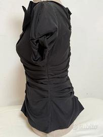 Unico! Archivio Prada! tipo progettato da qualche parte nel periodo intorno al 2002. Miuccia Prada sperimentò molto in questo periodo con queste texture e dettagli asimmetrici. taglia è 44 ma cade piccolo, è più una taglia è 42 ( eu 38), acquistato molto tempo fa, perché è così bello è tenuto a lungo in armadio, 1 volta indossato, (pensa un paio di volte lavato, visto troppo a lungo in armadio è rimasto seduto). Is een Design è una silhouette strettamente chiusa con una ruggine orizzontale su tutta la facciata, che garantisce un aspetto sculturale. Dettagli cuciti a mano ("cuciti a mano") con i loro pezzi vintage più lussuosi, qualità superiore dalla linea principale di quel tempo. Materiale è un mix di cotone e elastane