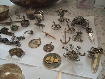 vendo 750 grammi di argento 800 , 250 grammi 925 oggettistica in più ho 41 monete in argento 37 500 lire miste due Kennedy 1964 argento 900 una 1000 lire in argento e un tallero moderno vendo tutto a 2,200 € peso 1500 grammi totale
