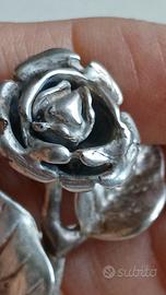 Raffinato Charm per collana a forma di Rosa in Argento 800 (punzonatura poco leggibile sul retro della foglia).