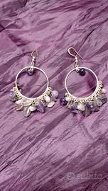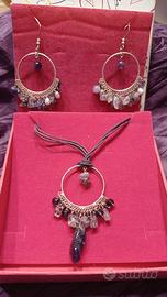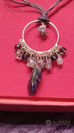 Parure di Orecchini argento 925 circolari con pendenti di ametista e ciondolo uguale agli orecchini con pendente ametista più grande, con cordoncino in tessuto viola e moschettone di chiusura piccolo di argento. Si può utilizzare anche con una catenina di argento ma il cordoncino viola esalta la preziosità dell'ametista. È un design molto etnico-elegante. La marca è la Christian Lay conosciuta in tutto il mondo per garanzia di gioielli e bigiotteria di alta qualità. Non vendibili separatamente. Nella loro confezione originale.
