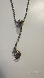 Vendo in blocco girocollo con pendente a mezza luna, orecchini a cerchio con margherite pendenti, orecchini a cerchio con swarosky piccoli.Argemto 925 ben conservati.