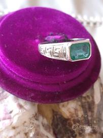 Anello unisex fatto ed incastonato a mano argento 925 sterling con solitario di smeraldo colombiano 2.19ct naturale e certificato. 21mm diametro interno .Anello casual e elegante