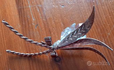 fiore di cristallo con fiocco e foglie d argento 925 vintage