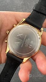📝 Descrizione Orologio originale Armani Exchange, modello AX1818. ✔️ Perfettamente funzionante ✔️ Cronografo multifunzione ✔️ Cassa color oro, quadrante nero ✔️ Fondello in acciaio inox ✔️ Impermeabilità 10 ATM Ottimo condizioni come nuovo. Usato pochissimo