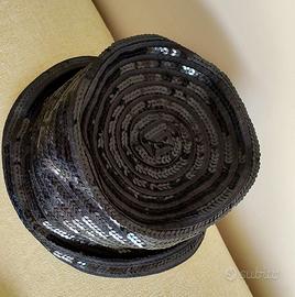 Armani,cappello donna, nero taglia 57 cotone 100% con fasce in pailettes. morbido e confortevole, facilmente adattabile alla testa.