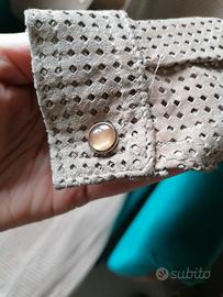 Completo TG 40 in pelle scamosciata con disegno traforato Armani Jeans originale. Minigonna e camicia. Un vero bijoux.