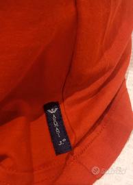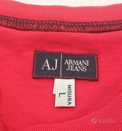 T-shirt Armani Jeans, colore rosso acceso con maxi stampa tono su tono della lettera “A” sul fronte e "J" sul retro. Linea pulita, design moderno e minimalista, perfetta per un look casual ma distintivo. Taglia indicata: L Misure reali (presa in piano): Spalle: 41 cm Torace (da ascella a ascella): 47 cm Lunghezza: 70 cm Vestibilità aderente, adatta a una L da donna. Cotone morbido e leggero, etichetta Armani Jeans sul fondo. Condizioni: ottime, usata pochissimo, senza difetti.