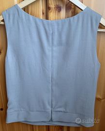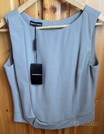 Top originale Emporio Armani di colore grigio chiaro con balza laterale e chiusura con zip posteriore,