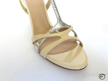 sandalo tacco 85, bellissimo nella versione monocromo, audace nella versione 3 colori lime argento panna