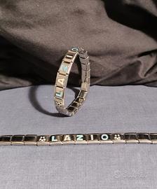 stupendo bracciale in maglia elastica in acciaio, con la scritta LAZIO in biancoazzurro con ai lati due palloni in rilievo. un'idea speciale da regalare o regalarsi. l'articolo nuovo.