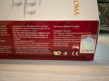 AS ROMA originali occhiali da sole con lenti specchiate, con bustina porta occhiai e pezzetta pulisci occhiali